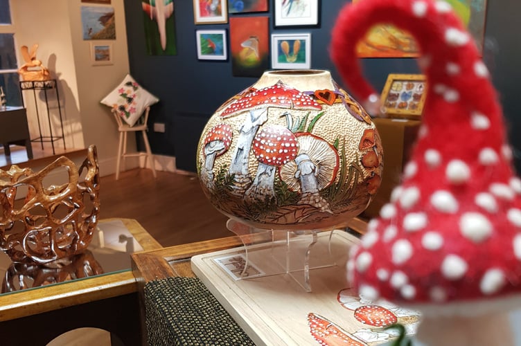 The exhibition features work created in many different media, from watercolours and pencil sketch through to textiles, ceramics, photography, metal sculpture and wood carvings.
