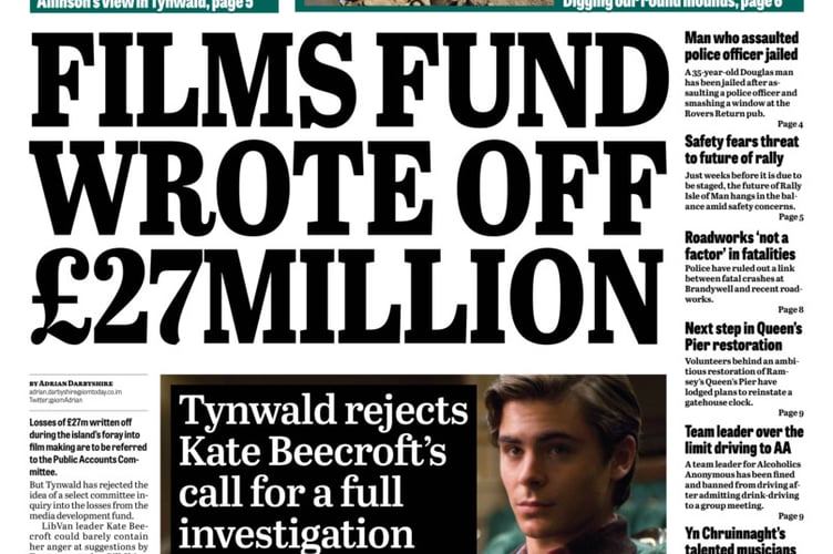 This week’s Manx Independent leads on the extraordinary amount of public money in the government’s media development fund that’s been written off.