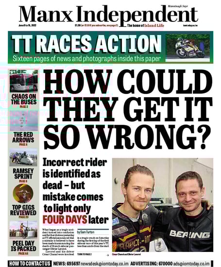 This week’s Manx Independent leads with the astonishing story about how officials named the wrong competitor when they announced a death.