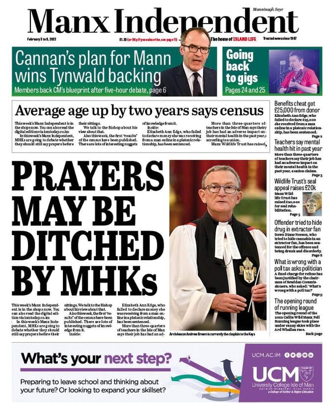 In this week’s Manx Independent, MHKs are going to debate whether they should still say prayers before their sittings.