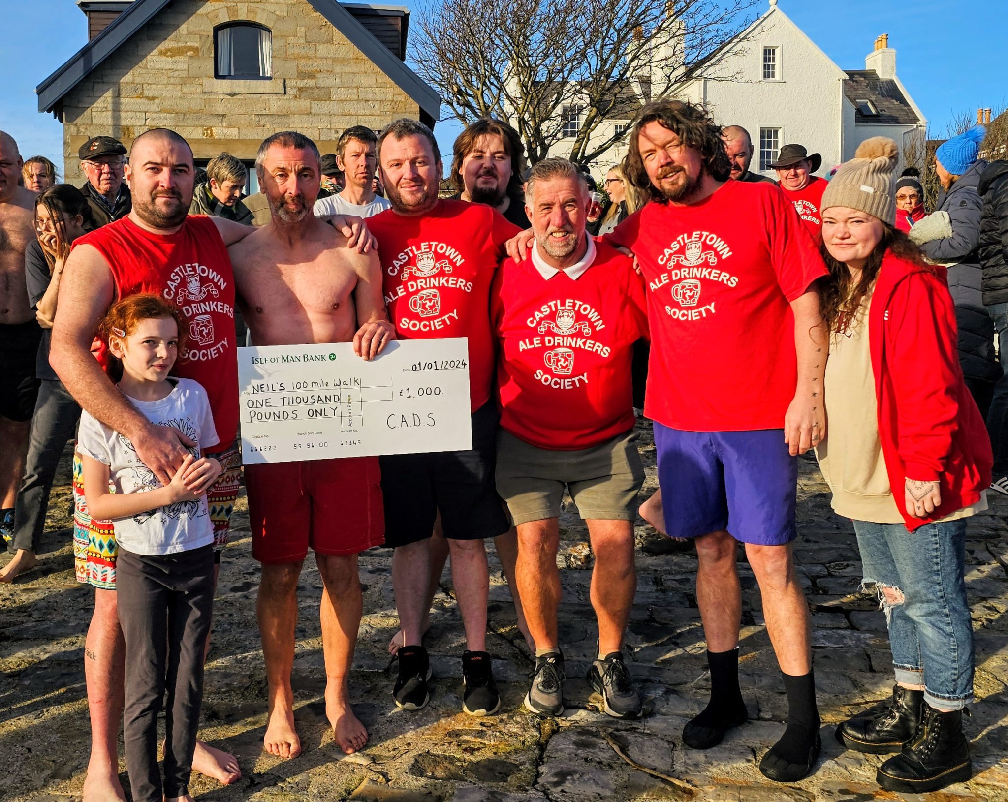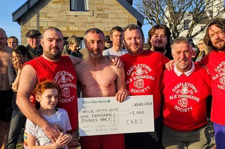 Once both the walk and the New Year’s Dip in Castletown was completed, he was presented with a cheque for £1,000 from the Castletown Ale Drinkers Society in recognition of his mammoth efforts.