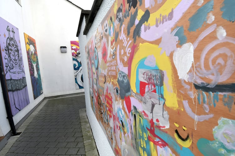 A series of bright, eye-catching murals have been put up on display in an alleyway next to the Castletown Civic Centre, forming both a public display space and an energetic and inviting walk-through into the centre of the town.