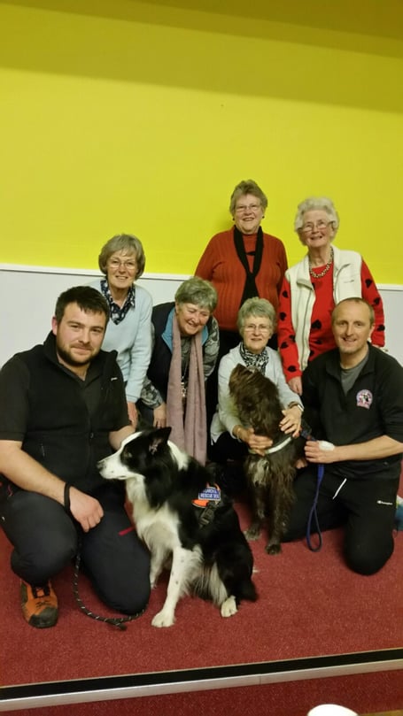 Members of Ballabeg WI were thrilled to welcome Search and Rescue Dogs Association dog handlers Jim Macgregor with his lurcher Ruby, a trailing dog, and Marc Marshall with his Border collie Matt, a search dog, to their March meeting.