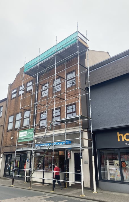 Scaffolding can already be seen erected on the frontage of the building, which neighbours Homeco furniture shop and the Up & Running sports shop.