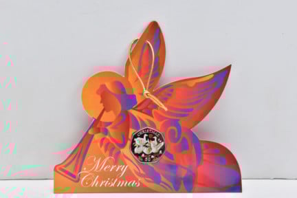 The auctioneers said there is a very rare, coloured diamond finish Pobjoy Isle of Man 50p ’Twelve Days of Christmas’ coin, mounted on an angel card as a Christmas tree decoration.